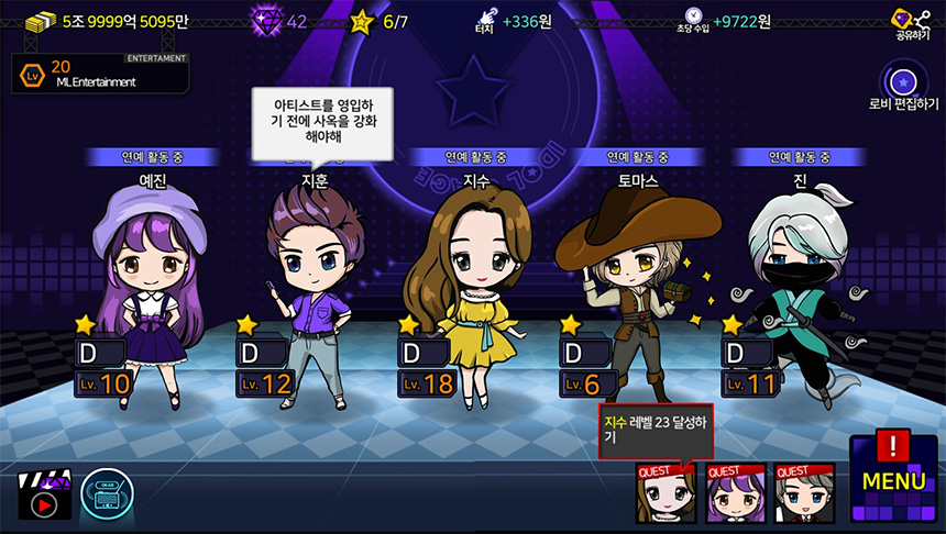 다양한 아티스트를 영입하여 나만의 연예 기획사를 만들어 보세요!
