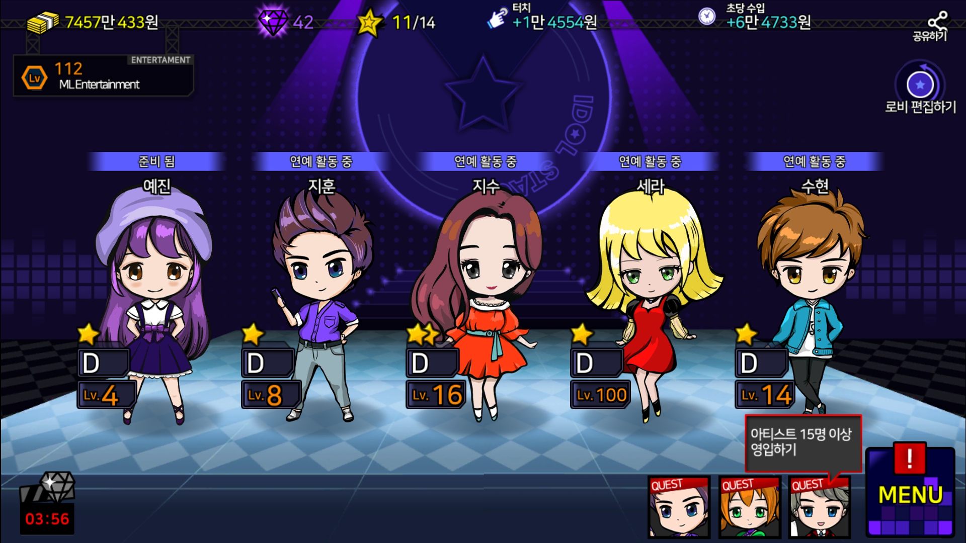 아이돌 성장시키기, 엔터테인먼트 운영하기 모바일 게임